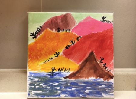 與幅畫的海用了一些紫色、藍色、深藍色和淺